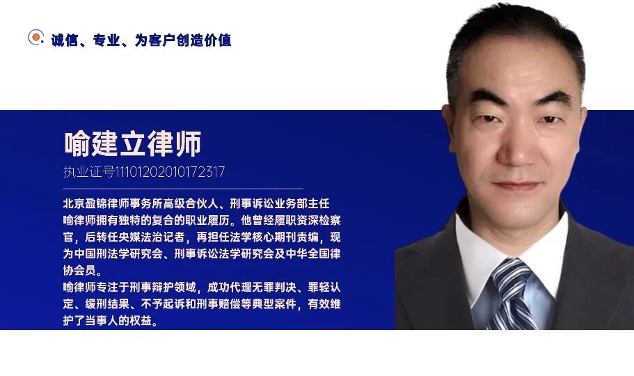 喻建立律师,北京盈锦律师事务所高级合伙人、刑事诉讼业务部主任。中国政法大学法学硕士。